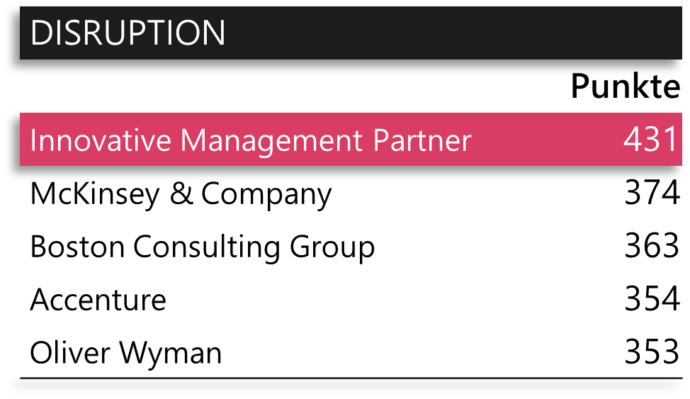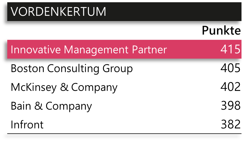 « Mit klarem inhaltlichen und methodischen Fokus positioniert sich IMP Open Strategy Consulting in der Spitzengruppe der Beratungen »