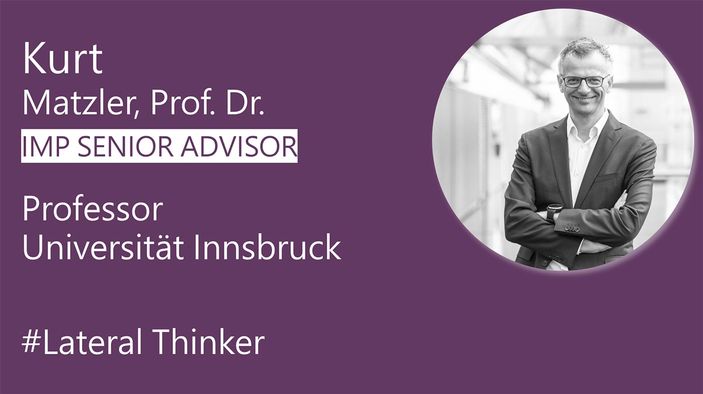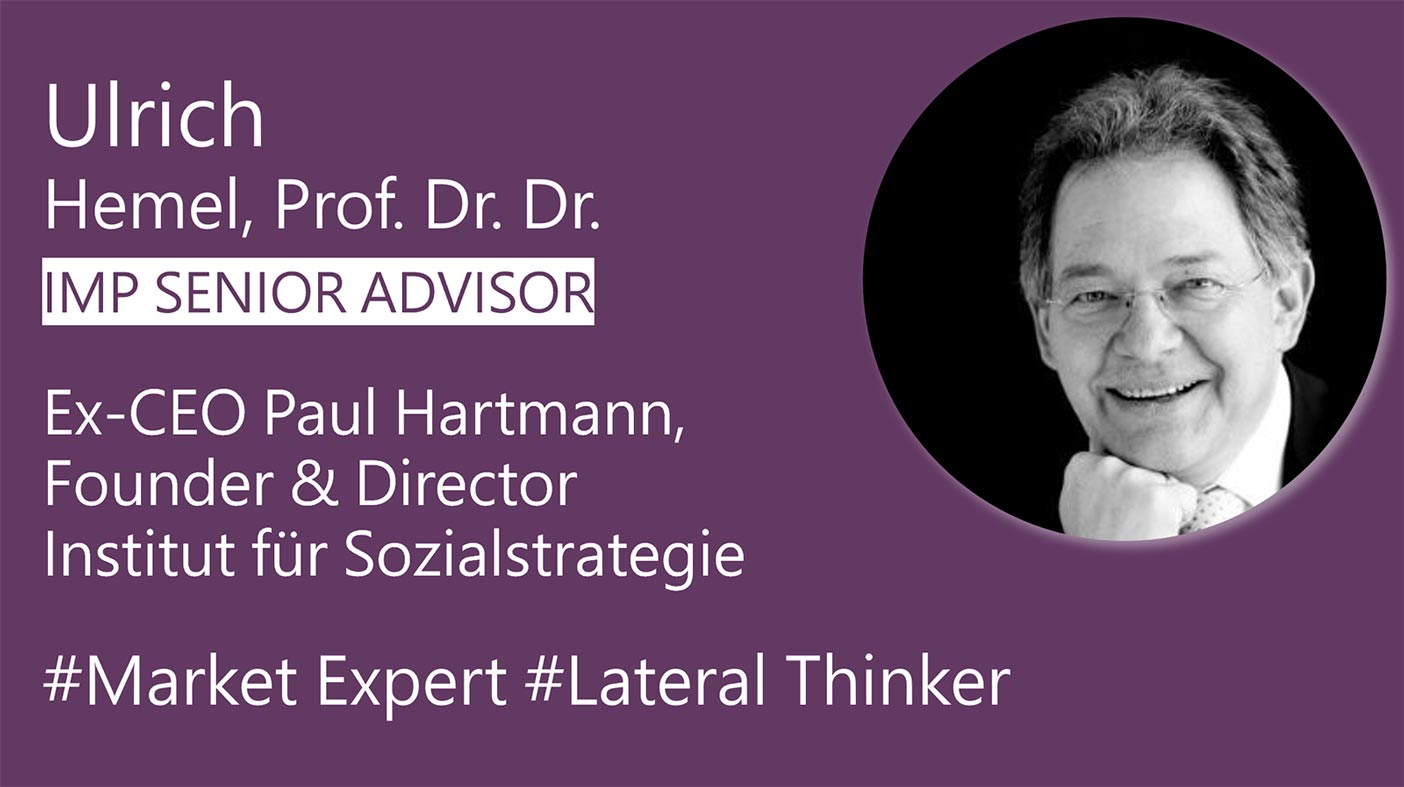 « Mit IMP Open Strategy Consulting überwinden wir die beiden größten Hürden der Strategiearbeit: (a) zu wenig inhaltlicher Tiefgang – es entstehen Strategien, die (wieder) ihren Namen verdienen. (b) Fehlende Mobilisierung der Organisation im Sinne der Strategie – wir machen Betroffene zu Beteiligten, was die Umsetzungsrate und Transformationserfolge signifikant steigert. »