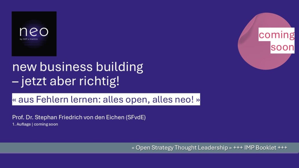Die IMP Master Pieces – Management Bestseller und IMP Booklets – fassen das Wesentliche zusammen und bringen Sie in puncto Zukunftsarbeit, Strategie, New Business und Innovations-Ökosysteme auf den neuesten Stand: Wissen, Empirie und Erfahrungen aus erster Hand, anschaulich dargestellt und zu Handlungsempfehlungen verdichtet.