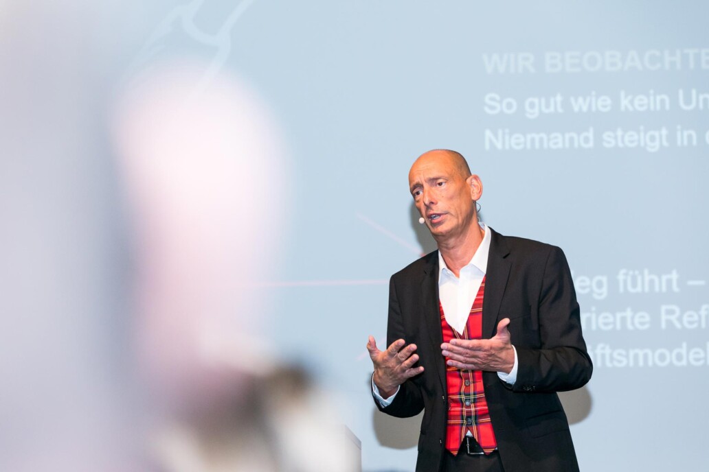 Vortrag ist nicht gleich Vortrag! Keynote ist nicht gleich Keynote! Immer mit Bezug auf anstehende, unternehmensspezifische Herausforderungen legt SFvdE den Finger in die Wunde, zeigt erfahrungsbasiert Muster des Misslingens auf, um dann – interaktiv – über Muster des Gelingens die Zuhörer (bis hin zu ganzen Organisationen) im Sinne der anstehenden Transformation zu mobilisieren.